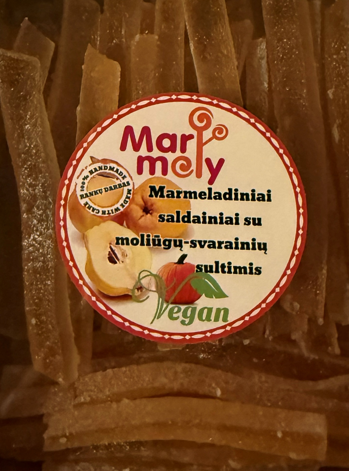moliūgų–svarainių sultimis – tai natūralūs, rankų darbo saldainiai, kuriuose susilieja rudeniška moliūgo švelnumo ir svarainio gaivos derinys. Šie šiaudeliai pasižymi lengvu saldumu, subtilia rūgštele ir šviesiai oranžiniu atspalviu, atspindinčiu jų natūralią sudėtį.