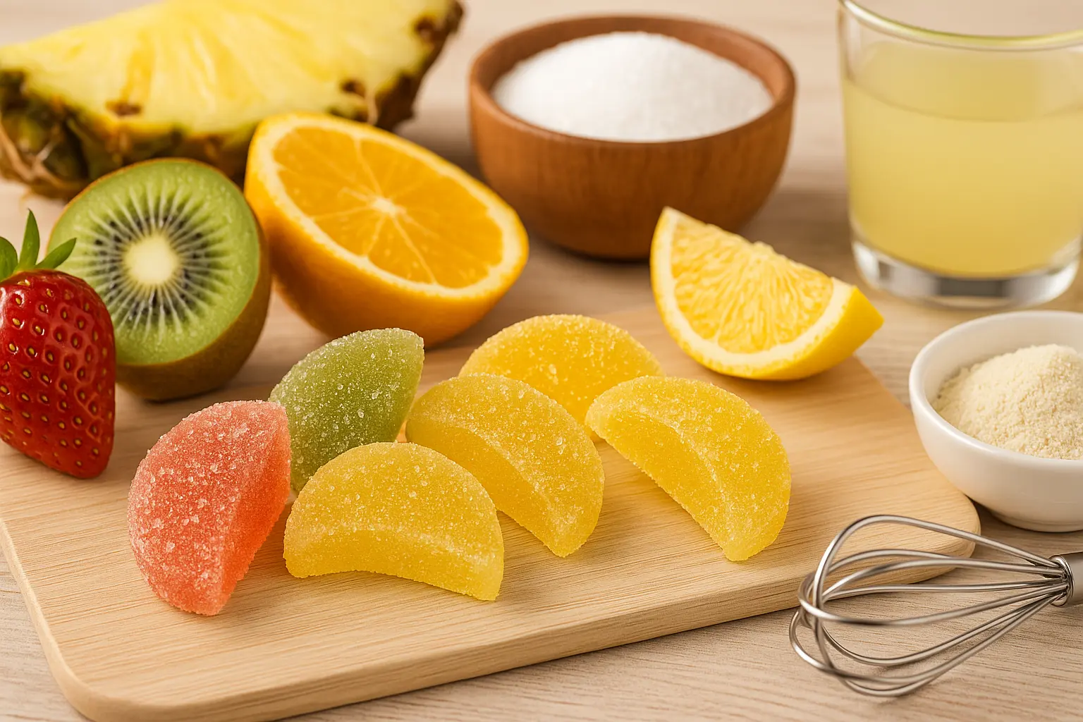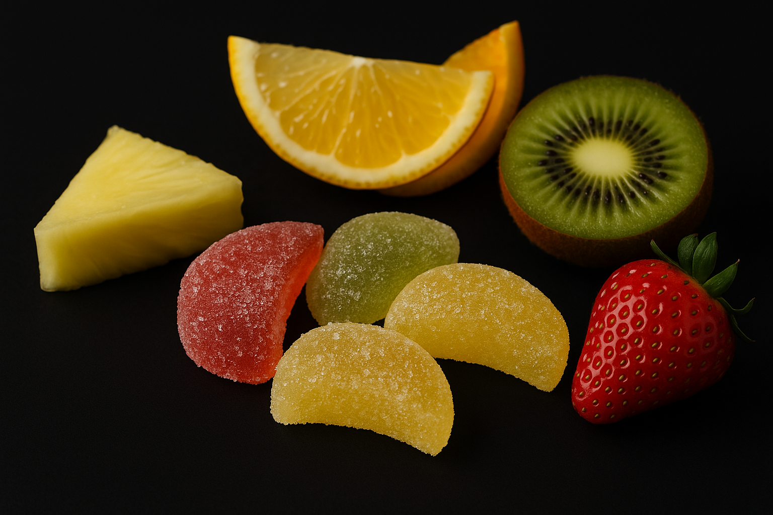 Šie saldainiai be dirbtinių dažiklių ir konservantų. Tai natūralus pasirinkimas tiems, kurie ieško lengvo, vaisiško deserto ar mielos dovanos artimam žmogui.